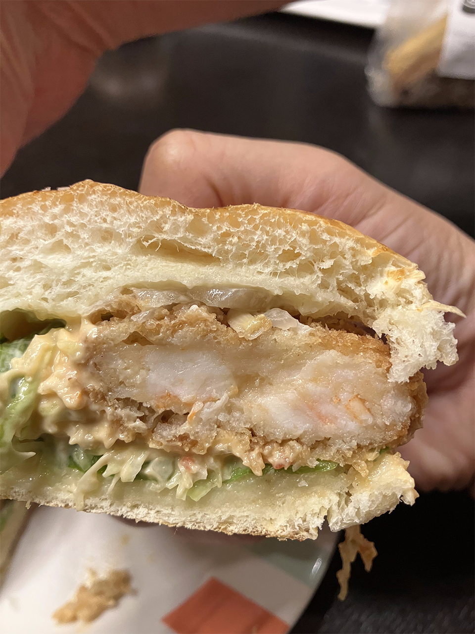続いて アジフライロール。タルタルソースがたっぷり、アジ身もしっかりしており、これもまた美味。